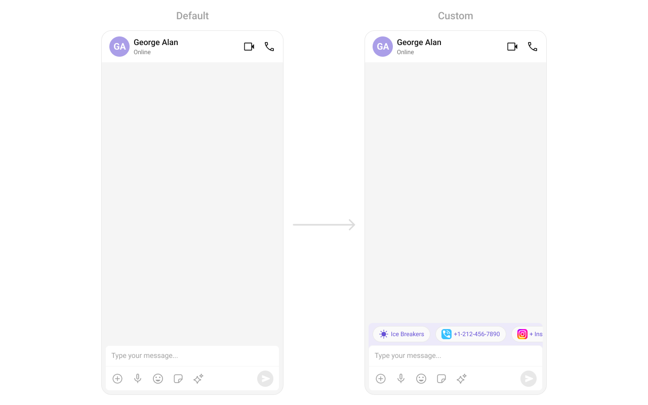 What this does: Replaces the default reaction-click behavior. When a user taps a reaction, your custom lambda executes with theemojiandbaseMessage.