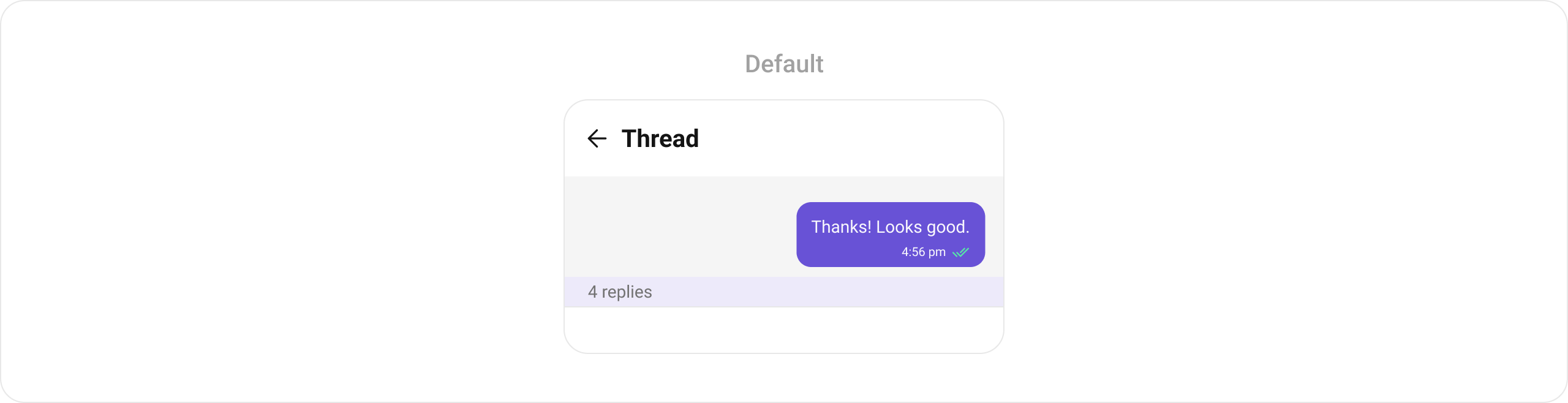 The component renders aRecyclerView containing the parent message bubble. The reply count text is readable by screen readers. Avatar images include content descriptions derived from the sender’s name.