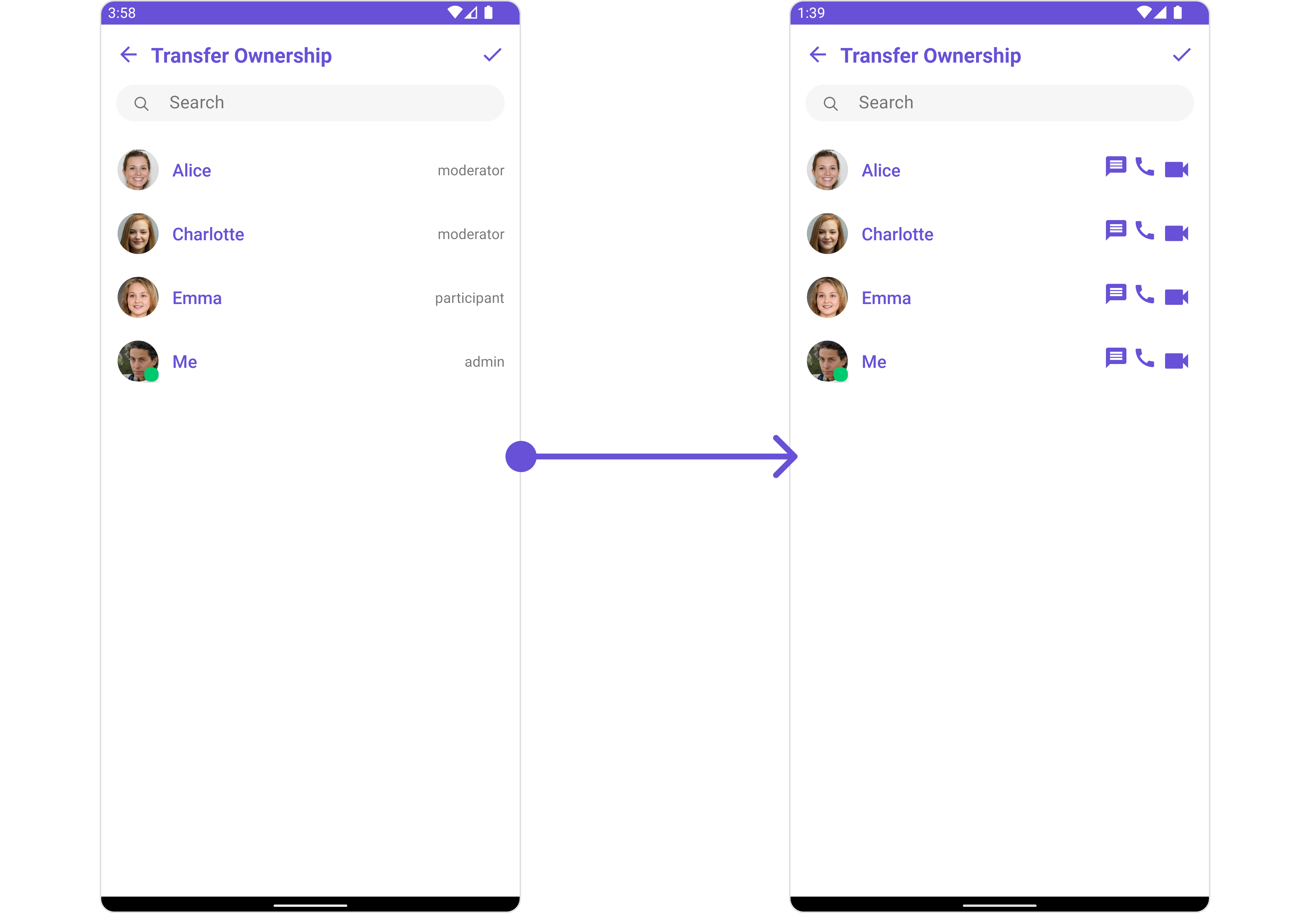 | CometchatGroupMembers | CometChatGroupMembers is an independent component designed to create a user-friendly screen for browsing and managing group members. Users can effortlessly search for specific members and transfer ownership |