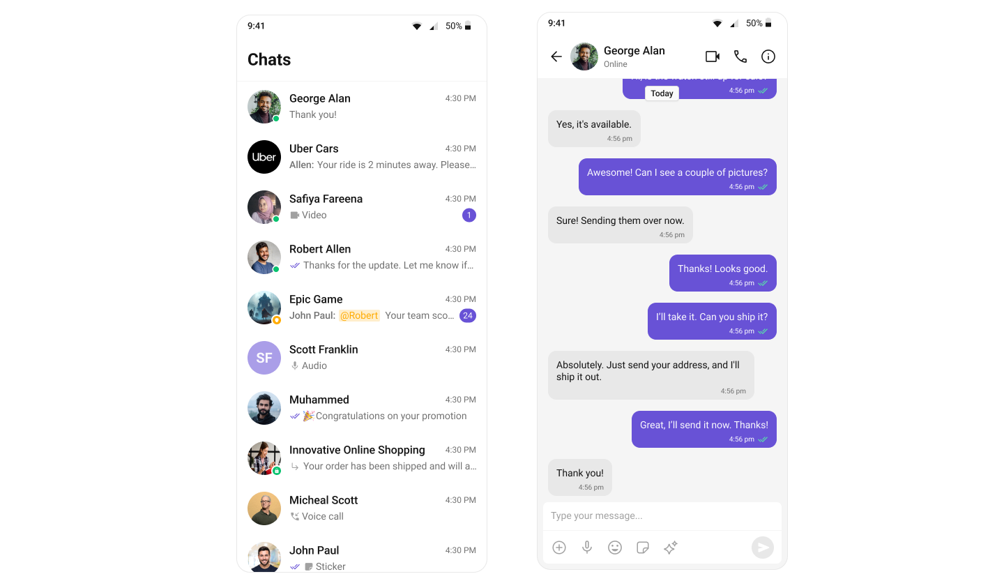 Best for: When a user lands directly into a chat screen, bypassing the conversation list. Highlights:- Single Screen Chat – Use