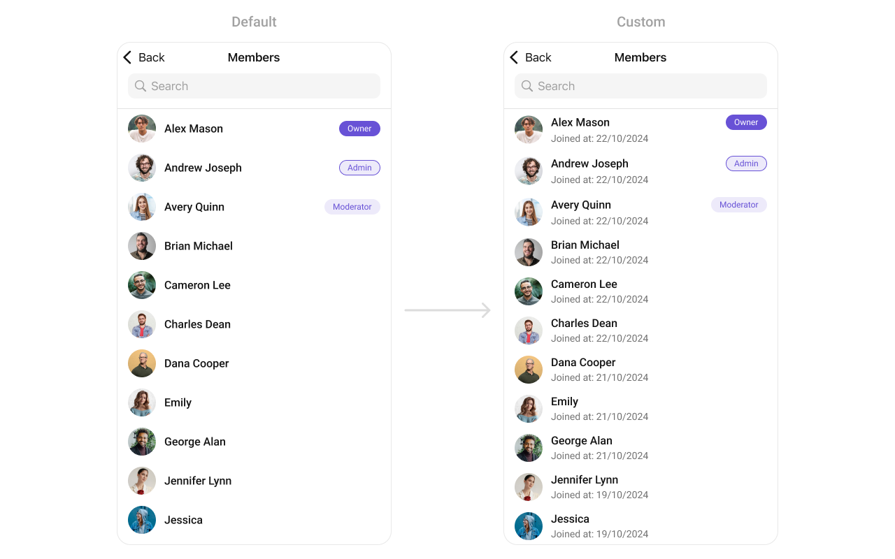 - You can customize the subtitle view for each GroupMembers item to meet your requirements