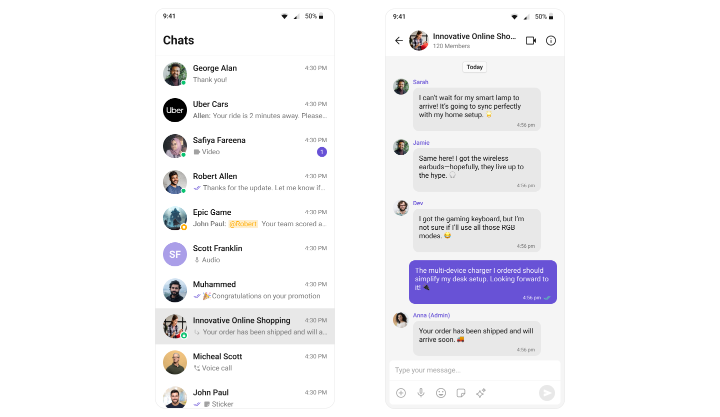 The Quoted Reply feature enables users to quickly reply to specific messages by selecting the “Reply” option from a message’s action menu. This enhances context, keeps conversations organized, and improves the overall chat experience in both 1-on-1 and group chats.