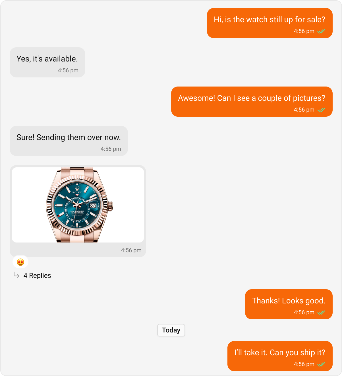 | Outgoing bubbles | messageListStyles: { outgoingMessageBubbleStyles: { containerStyle: { backgroundColor: "#F76808" } } } |