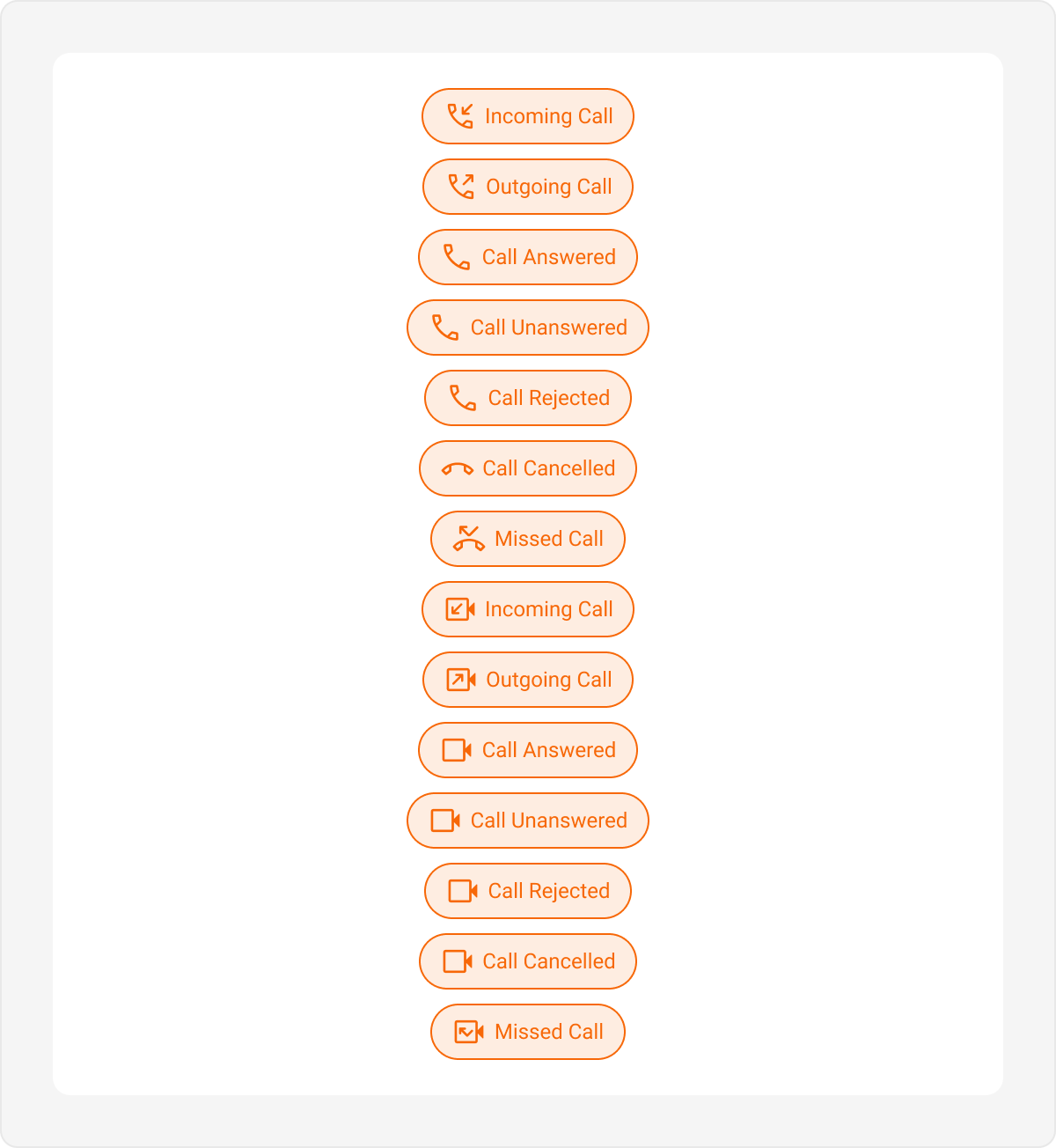 Call action bubbles display call-related actions, such as missed calls, in the chat interface. Default
