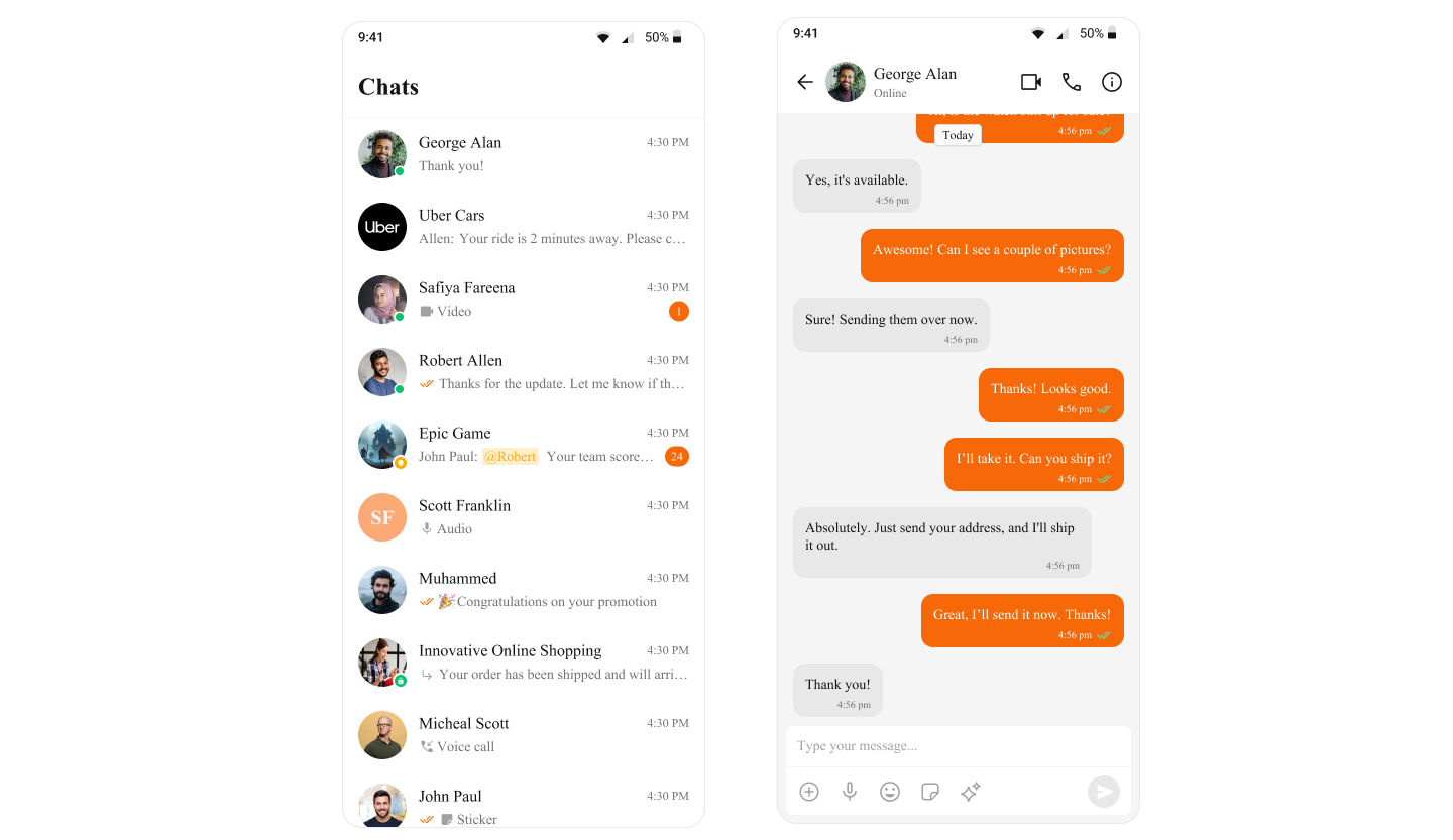 primary | Primary accent color (buttons, outgoing bubbles, active states) |