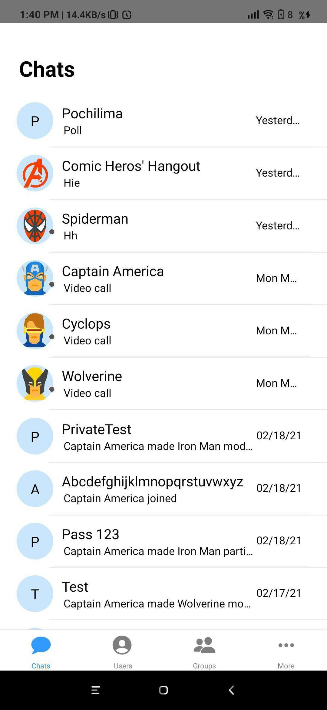 TheCometChatGroupList is a component that displays the list of groups available. You can use this component within your app if you wish to display the list of groups.