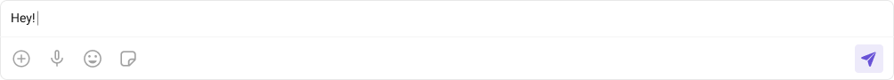 The text input is auto-focused and supports standard keyboard shortcuts. The send button activates on Enter (configurable viaenterKeyBehavior). Attachment, emoji, sticker, and voice recording buttons are keyboard-focusable and activate on Enter/Space. The mention suggestions list is keyboard-navigable with arrow keys.