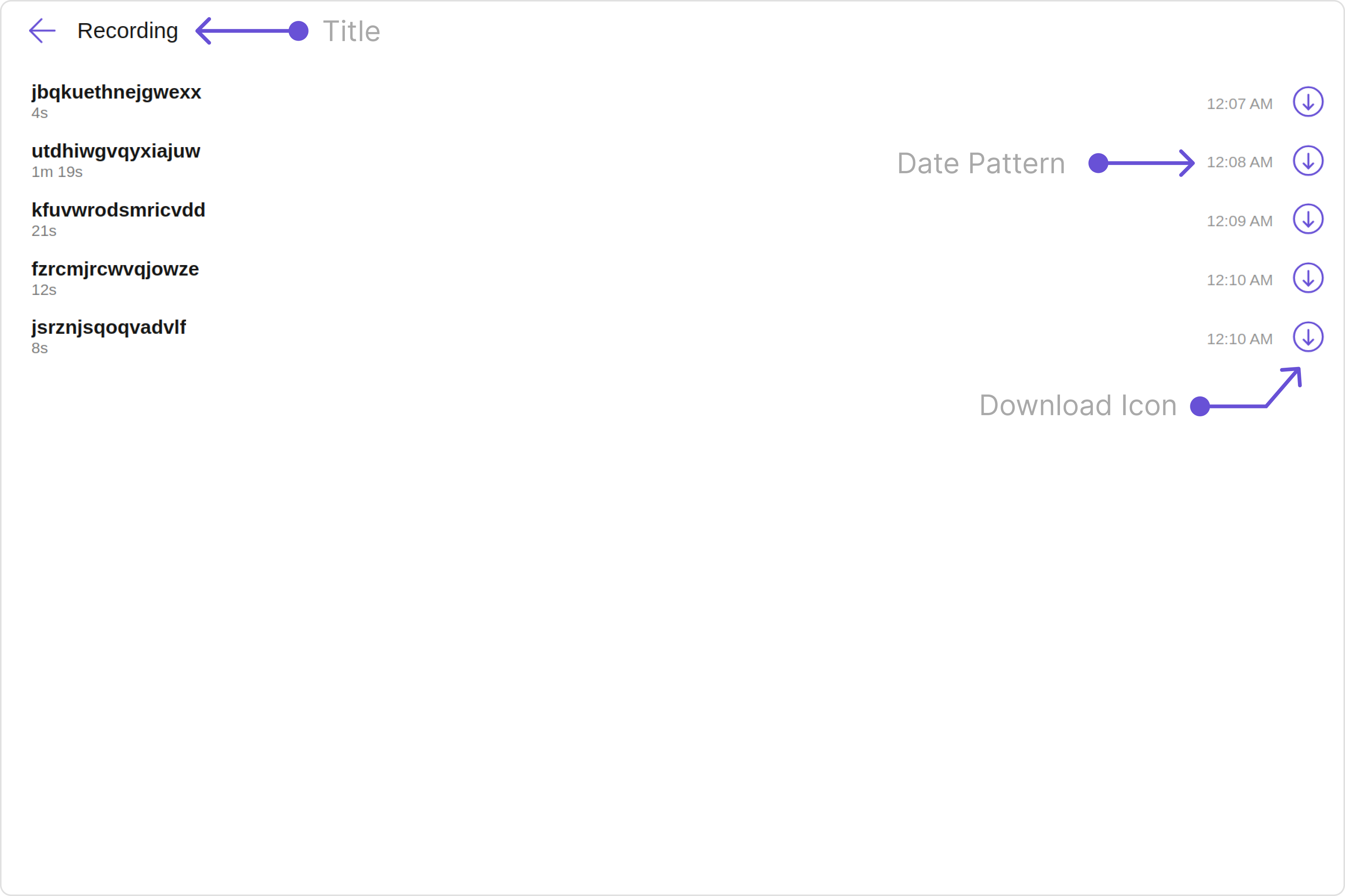 To fit your app’s design requirements, you have the ability to customize the appearance of theCallLogRecordings component. We provide exposed methods that allow you to modify the experience and behavior according to your specific needs.